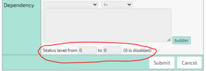 A hr-management system is used to show information on employees who are assigned to projects. These employees are either currently working on a project or between projects. Or they might be in the process of being hired and would therefore not be a full employee yet. Depending on which of these states the employee is currently in, different information about them would be made available. If they were under consideration of being hired, we should see their application. If they were working on a project, we should see their work schedule. If they were between projects, we should see the end date of their last project. Each piece of information should only be made visible for the status in question, since they make no sense or are unimportant otherwise. Status level dependencies are used to manage this visibility.